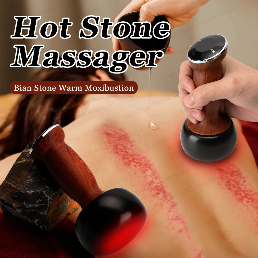 Electric Hot Stone Massager Warm Moxibustion Guasha Tool Wireless Hot Compress Body Scraping Physiotherapy Back Face Massage